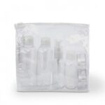 Compleet 4-Travel cosmeticaset van flesjes en crèmepotjes in pvc etui. De set voldoet aan de internationale eisen voor het meenemen van vloeistoffen in de handbagage tijdens vliegreizen.