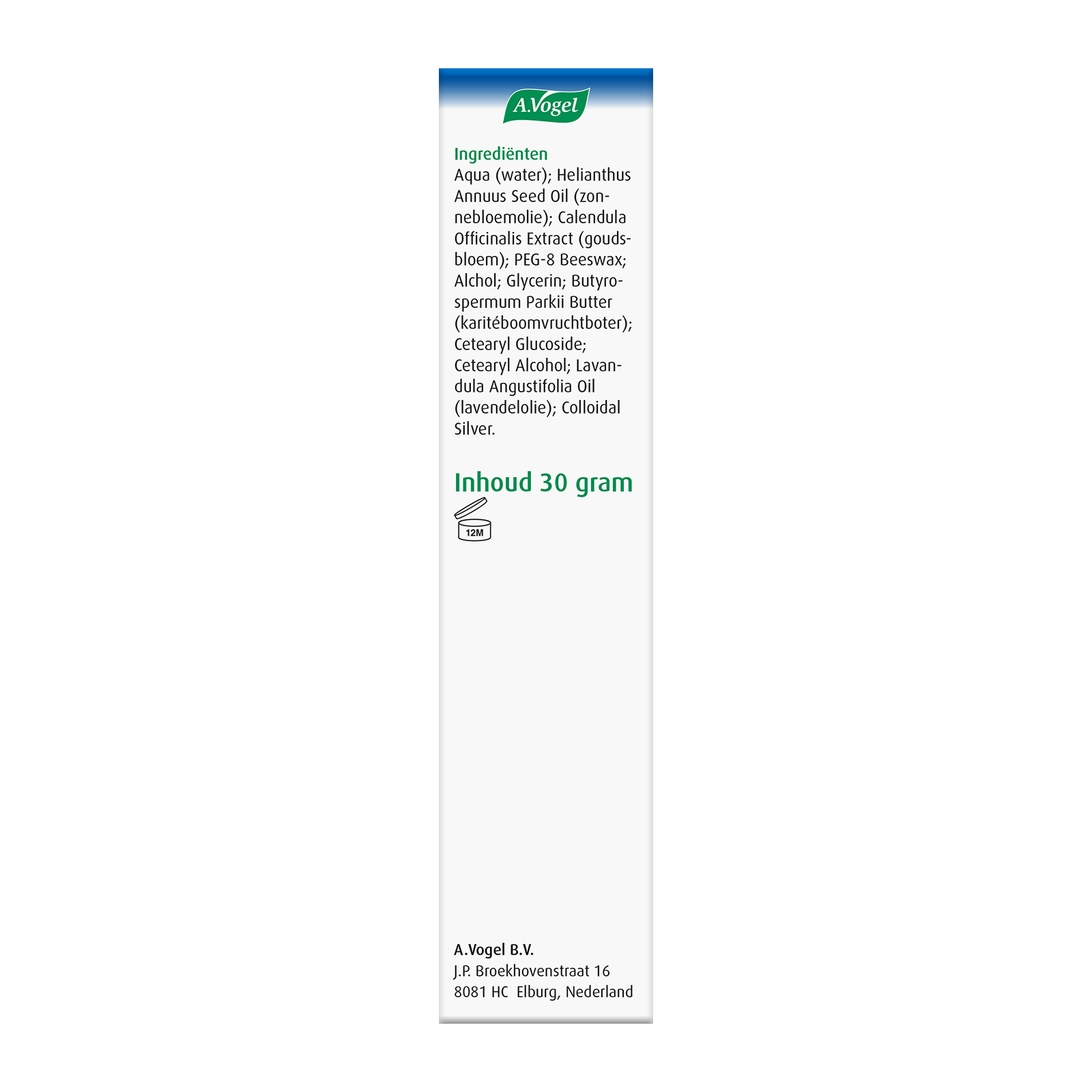 Zuiver water; zonnebloemolie; goudsbloemextract (Calendula officinalis) 10%; PEG-8 bijenwas; glycerol; alcohol; Butyrospermum parkii; cetearyl glucoside; cetearyl alcohol; glycerol; lavendelolie (Lavandula angustifolia); colloïdaal zilver.