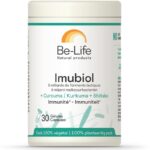 Kurkuma* (Curcuma longa) bio extract 5-7/1, L-Glutamine, Calcium ascorbaat (vitamine C), Shitake (Lentinus edodes*) bio extract 18/1, Zink pidolaat, Melkzuurbacteriën : Bifidobacterium bifidum BE-71, Bifidus animalis lactis BE-421, Bifidus longum BE-175, Lactobacillus acidophilus BE-418, Lactobacillus casei BE-215, Lactococcus lactis BE-1058, Lactobacillus plantarum BE-1012, Lactobacillus rhamnosus BE-11, Streptococus thermophillus BE-83, Vitamine D3 (cholecalciferol), Vitamine B6 (pyridoxinehydrochloride), Vitamine B2 (riboflavine), Maltodextrine, Microkristallijne cellulose, Magnesium stearaat, Plantaardige cellulose (capsule)