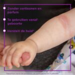 Bepanthen Eczeem Crème is er ook voor de allerkleinsten (te gebruiken vanaf de geboorte) en verkrijgbaar in een kleine variant van 20 gram in het babyschap en online. Bepanthen Eczeem Crème bevat geen cortisonen (hormonen), parfum en parabenen. Bepanthen Eczeem Crème verlicht effectief jeuk en roodheid bij licht tot matig eczeem op de babyhuid. Daarnaast ondersteunt Bepanthen Eczeem Crème het huidherstel* bij huidirritatie, zoals eczeem of een allergische reactie op de babyhuid.