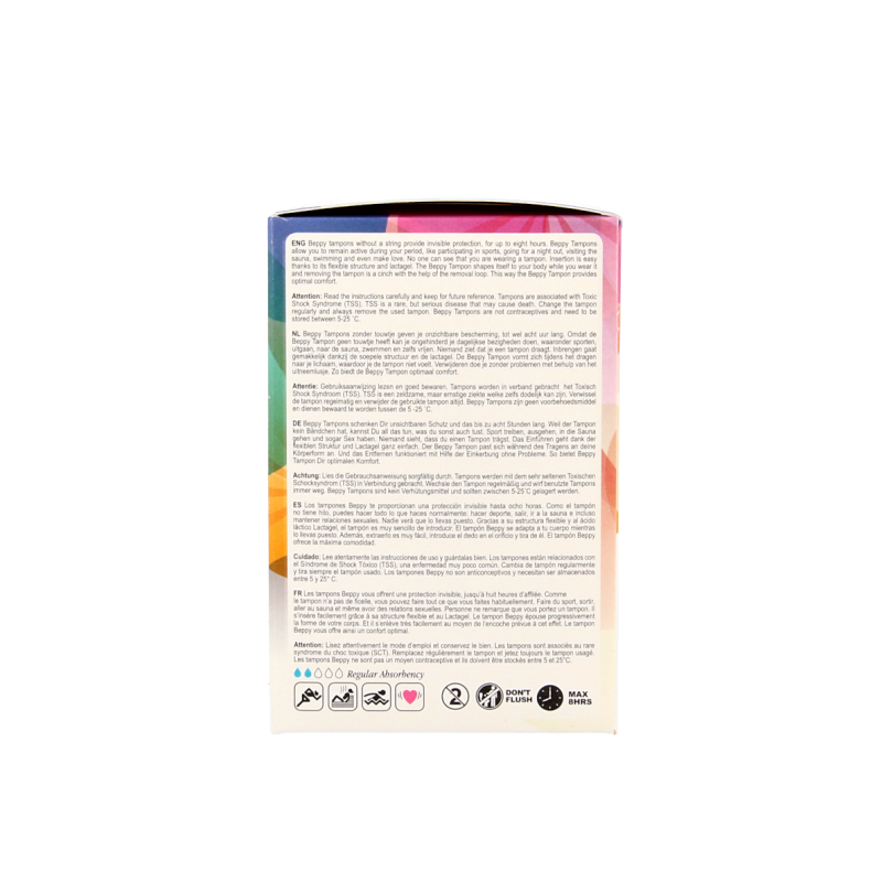 De Beppy Soft+Comfort Tampon is een zacht flexibel sponsje dat je draagt tijdens je menstruatie. De tampon biedt tot wel 8 uur onzichtbare bescherming. Een tampon zonder touwtje!