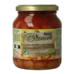 Witte bonen (50%)*, tomaten* (uit concentraat)(38%), water, agavesiroop* (2%), zeezout, uipoeder*, zwarte peper*, basilicum*, oregano*, knoflook*.
