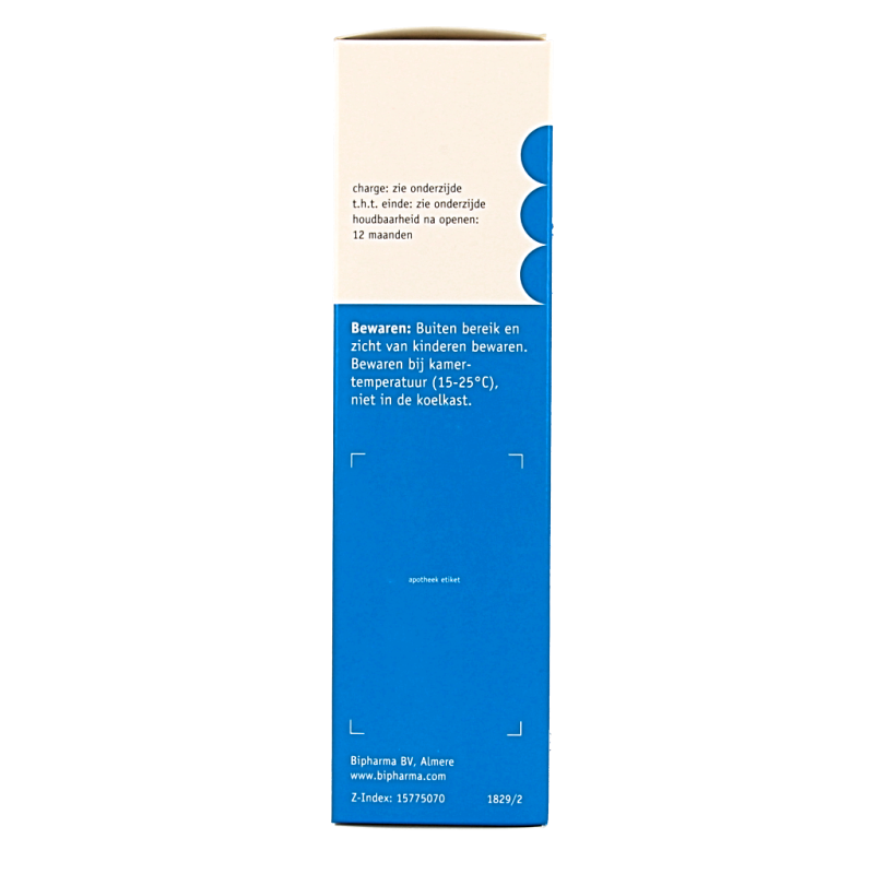 Bewaren beneden 25°C, niet in de vriezer.