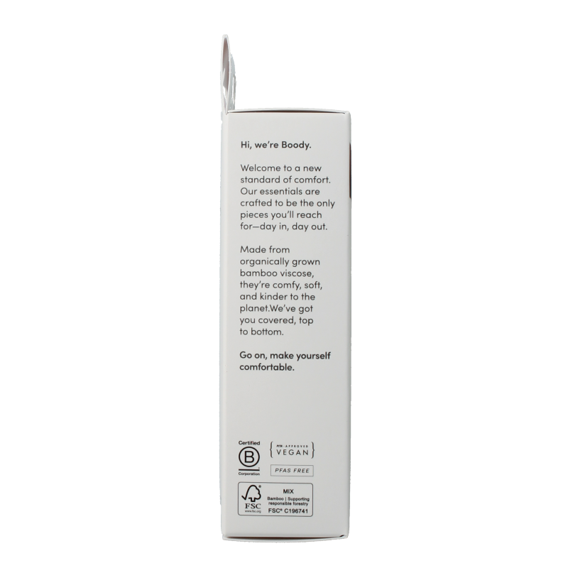 De basics van Boody zijn net zo zacht voor jouw huid als dat het is voor onze planeet. Bamboe is fantastisch: het groeit razendsnel en is dus bij uitstek hernieuwbaar. De gebruikte bamboe heeft zowel het FSC- als het ECOCERT-keurmerk. De productie verloopt waterbesparend en de kledingstukken zijn plasticvrij en milieuvriendelijk verpakt. Bovendien gaat hun ecologische textiel lang mee.