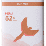 Donkere melkchocolade gemaakt met Criollo cacaobonen uit Peru – Amazone met hand-geplukte Arabica koffiebonen uit Colombia.