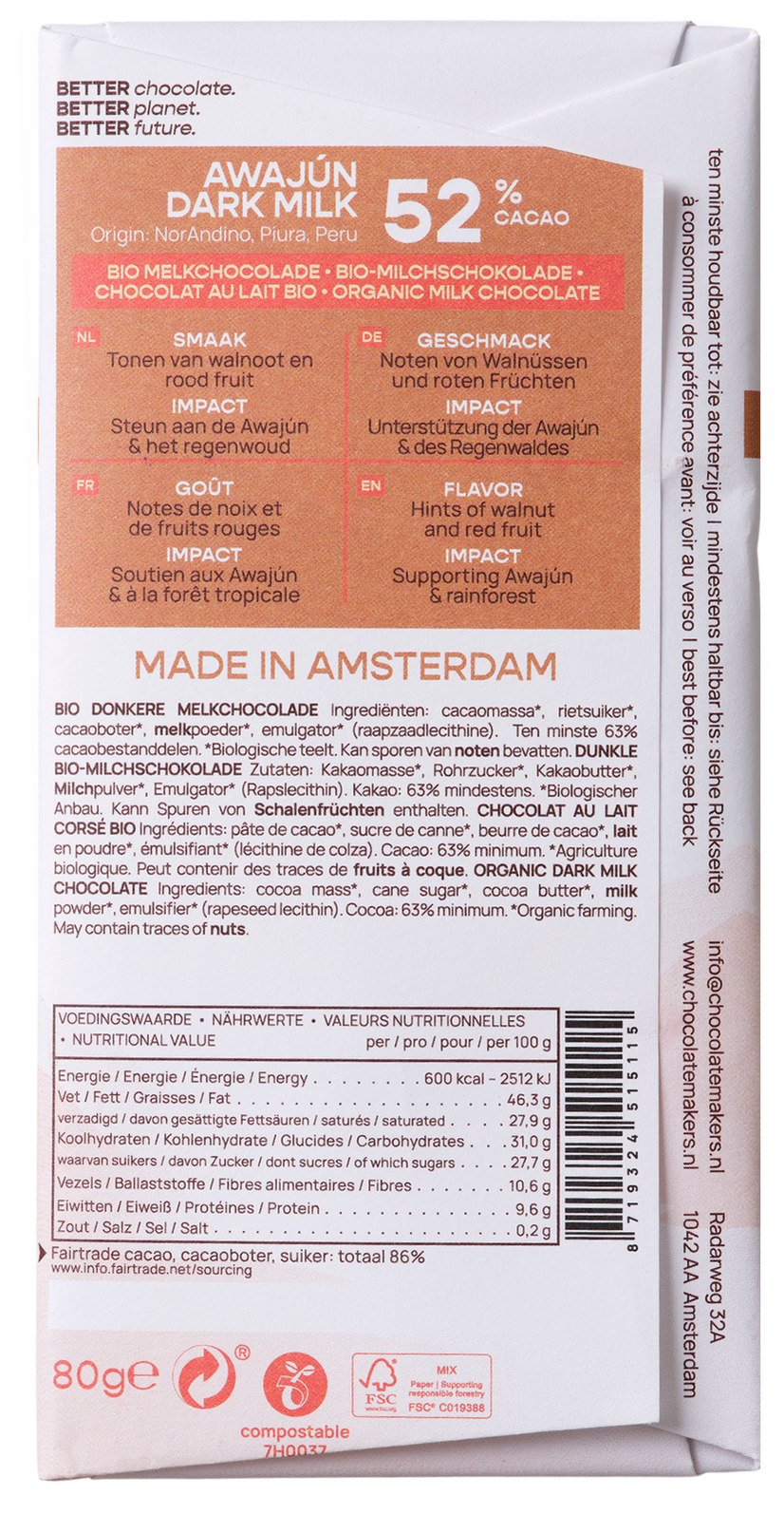 Chocolatemakers Awajun 52% donkere melk fairtrade bio