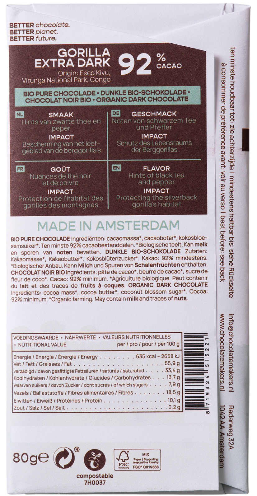 Chocolatemakers Gorilla Extra Puur 92% bio