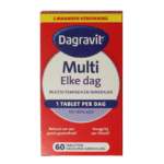 Dagravit Multi Elke Dag is speciaal ontwikkeld voor de dagelijkse aanvulling van vitaminen en mineralen. Het is een complete multivitaminen met essentiële vitaminen en mineralen in een optimale dosering (tot 100% van de dagelijkse aanbevolen hoeveelheid).