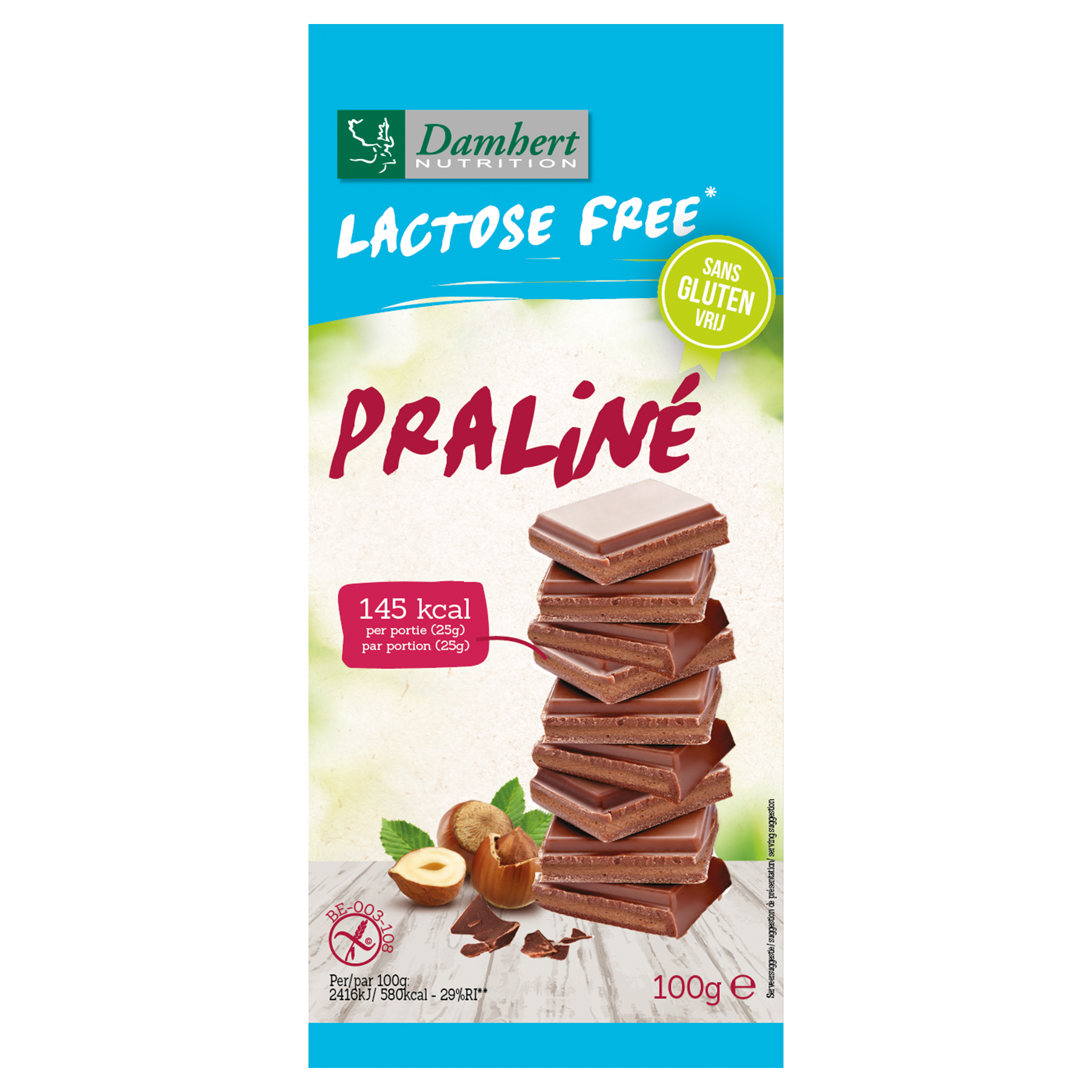 Damhert Lactose Free chocoladetablet praline glutenvrij