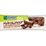 Meergranenvlokken (rijst, maïs, suiker, zout), maltosestroop, melkchocolade (18%) [suiker, cacaoboter, MELKpoeder, cacaomassa, emulgator (SOJA lecithine), aroma], gepofte rijst (rijst, suiker, zout), invertsuiker (glucose, fructose, suiker), dextrose, geroosterde AMANDELEN (noten) (4,5%), geroosterde HAZELNOTEN (4,5%), gepofte gierst (gierst, maïs, rijst, zout), pure chocoladedruppels (4%) [cacaomassa, suiker, cacaopoeder, cacaoboter, emulgator (SOJA lecithine)], cacaopoeder, emulgator (SOJA lecithine).