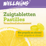 Suiker (48,03%), glucosestroop, maltose, honing (3,35%), zuurteregelaar (citroenzuur), vitamine C (0,41%),citroenaroma (0,37%), sinaasappelsmaak, propolisextract (0,19%), menthol, citroenolie (0,11%) (Citrus Limon L), verdikkingsmiddel (Arabische gom), kleurstof (curcumine)