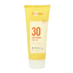 Derma Sun Zonnelotion met factor 30 is zeer waterbestendig en biedt bescherming tegen de zon voor kinderen en volwassenen. De lotion biedt de bescherming tegen de UVA en UVB zonnestralen en voldoet aan de aanbevelingen van de EU. De zonnelotion trekt snel in de huid, maakt deze niet vettig en voorkomt uitdrogen.