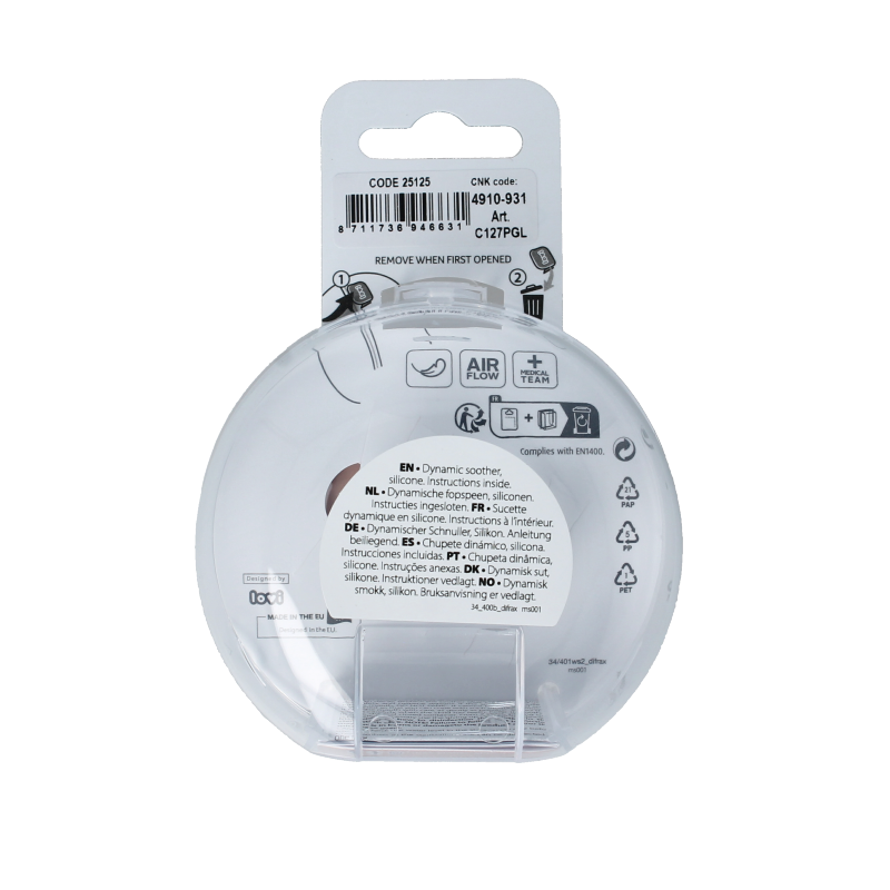 De Dynamische Prime Glow fopspeen sluit optimaal aan bij de natuurlijke zuigbehoefte van baby’s, dag en nacht.