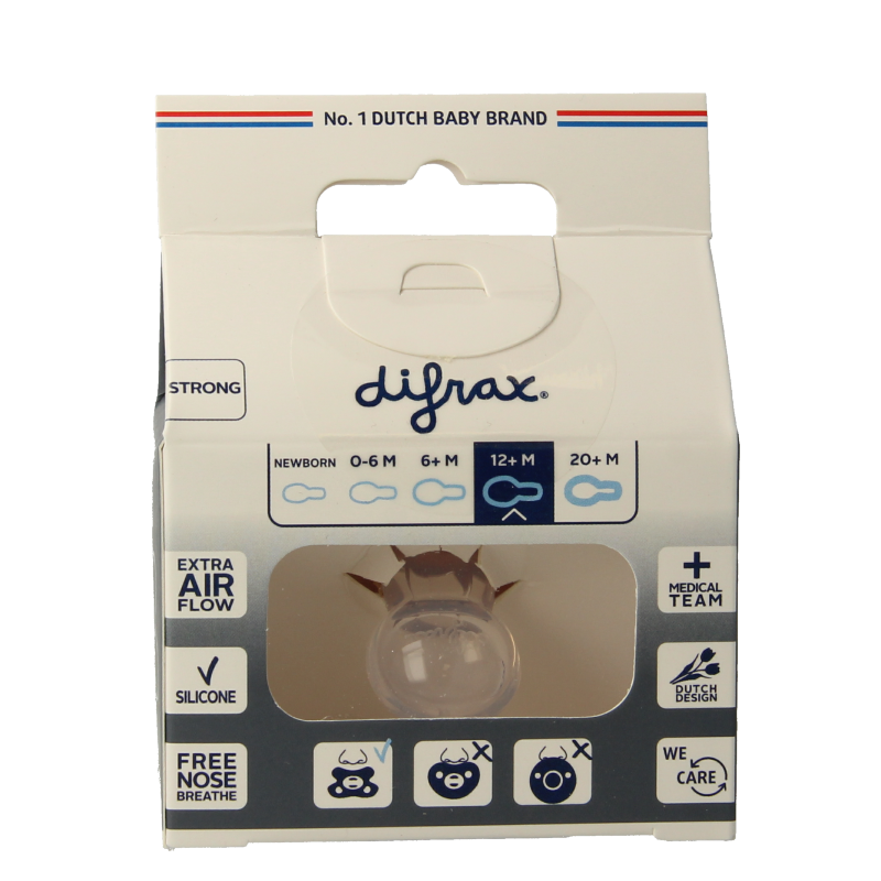 De Difrax Fopspeen Natural 12+ M voldoet aan de zuigbehoefte van je baby. Deze fopspeen is symmetrisch, wat je baby snel herkent en makkelijk(er) zal accepteren. De grootte van het fopspeen schildje en die van het half gevulde zuiggedeelte zijn speciaal ontwikkeld voor baby’s vanaf 12 maanden.