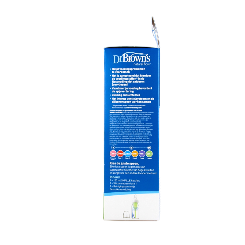 Dr. Brown’s werd in 1996 ontwikkeld door de Amerikaanse arts Craig Brown. Het is de enige fles met een gepatenteerd ventielsysteem dat bijdraagt aan de gezondheid van baby’s. Met Dr. Brown’s voed je je kindje vacuümvrij en zonder luchtbelletjes. Op deze manier helpt de fles voedproblemen zoals darmkrampjes en overgeven voorkomen en blijven vitamine C, A en E optimaal behouden. De werking van Dr. Brown’s is wetenschappelijk bewezen.