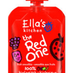 100% biologische gepureerde aardbeien, frambozen, appels + bananen met een beetje citroensap. Een biologische fruitsmoothie zonder toevoegingen.