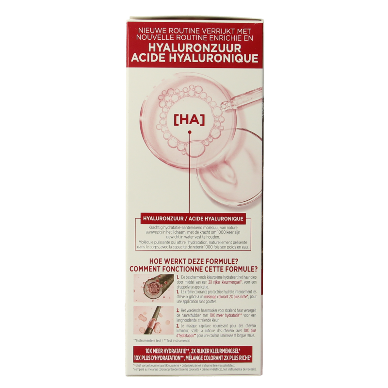 L’Oréal Paris Excellence Crème is een permanente haarkleuring die ideaal is voor het dekken van grijs haar. De haarkleuring biedt 100% grijsdekking. Excellence Crème is een drievoudig verzorgende kleuring. De crèmekleuring beschermt, de pH shampoo is zacht voor de hoofdhuid en verzorgt en het haarmasker voedt het haar. De crèmekleuring, verrijkt met pro-keratine, helpt bij het versterken van het haar. Daarnaast zit er in de kleuring een serum, dat het haar beschermt tijdens het kleuren. Zo zorgt de formule voor bescherming van het haar tijdens het kleuren en een langdurige kleur. Bij de kleuring zit een pH Shampoo. Deze is zacht voor de hoofdhuid. Je gebruikt de shampoo na het kleuren om overtollige crèmekleuring uit het haar te spoelen. De shampoo onthult de glans van het haar en maakt het gladder. Dit draagt bij aan een rijke en natuurlijke kleur. Het Excellence Crème haarmasker is de laatste stap van de kleurbehandeling. Het heeft een lichte formule die verrijkt is met ceramiden waardoor het haar intens wordt verzorgd zonder het te verzwaren. Je kunt het haarmasker na het kleuren meerdere malen gebruiken om zo het haar glanzend, soepel en levendig te houden.