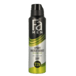 Ontdek Fa Men Sport Energy Boost Anti-Transpirant Deodroant Spray met de geur van gember & limoen. De formule biedt 72 uur bescherming tegen zweet en bevat 0% alcohol.