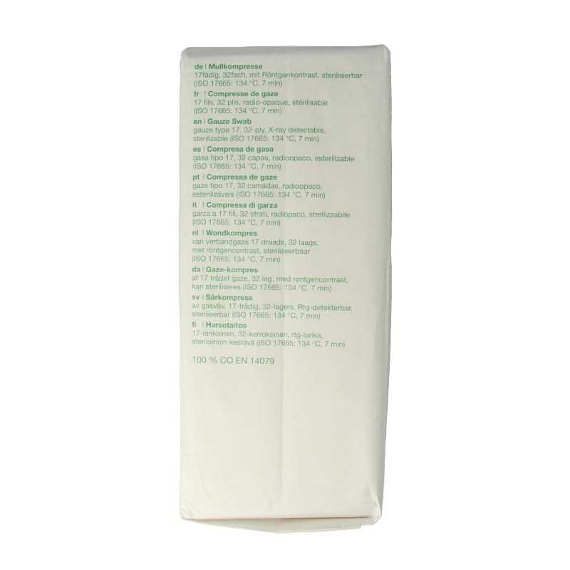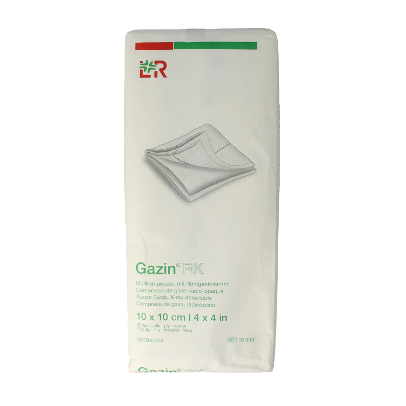 Gazin gaaskompressen zijn zacht, sterk absorberend en luchtdoorlatend. Omdat alle knipranden binnen liggen zijn er geen randrafels. Het assortiment omvat steriele gaaskompressen zonder, en onsteriele gaaskompressen met of zonder röntgencontrastdraad