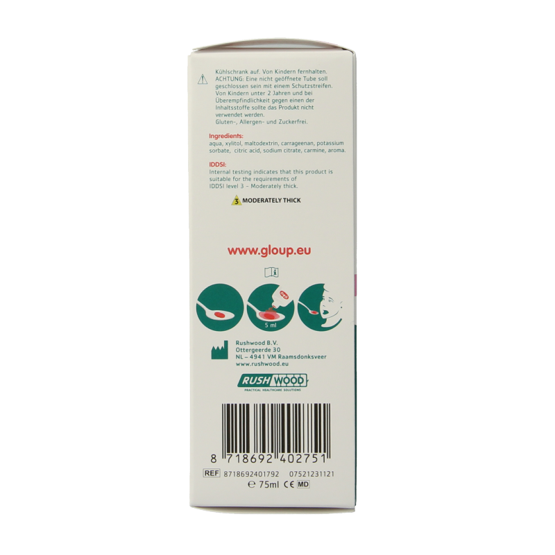 Op de tube staat aangegeven tot wanneer de slikgel gebruikt kan worden. Na opening van de tube is Gloup nog twee maanden houdbaar. Niet gebruikte Gloup kunt u na de vervaldatum gewoon met het huishoudafval weggooien.