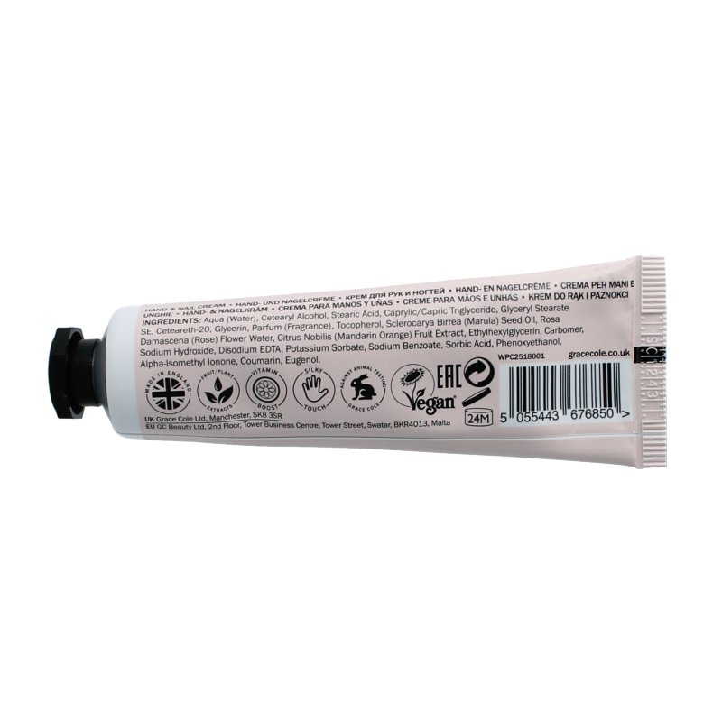 Aqua (Water), Cetearyl Alcohol, Stearic Acid, Caprylic/Capric Triglyceride, Glyceryl Stearate SE, Ceteareth-20, Glycerin, Parfum (Fragrance), Tocopherol, Sclerocarya Birrea (Marula) Seed Oil, Rosa Damascena (Rose) Flower Water, Citrus Nobilis (Mandarin Orange) Fruit Extract, Ethylhexylglycerin, Carbomer, Sodium Hydroxide, Disodium EDTA, Potassium Sorbate, Sodium Benzoate, Sorbic Acid, Phenoxyethanol, Alpha-Isomethyl Ionone, Coumarin, Eugenol.