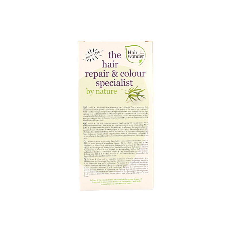 Hairwonder Colour & Care kleurt, beschermt, verzorgt en versterkt het haar in één behandeling. Nog nooit was een langdurig houdbare haarkleuring zonder ammonia verrijkt met zoveel goeds uit de natuur.
