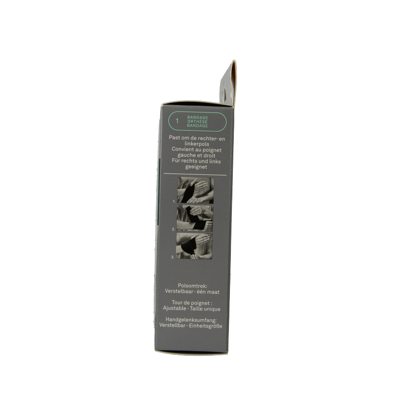 Stap 3: Wikkel de bandage onder de pols door en weer over de bovenkant van de pols. Maak de klittenbandsluiting vast en pas de strakte van de bandage aan totdat deze stevig, maar comfortabel aanvoelt.