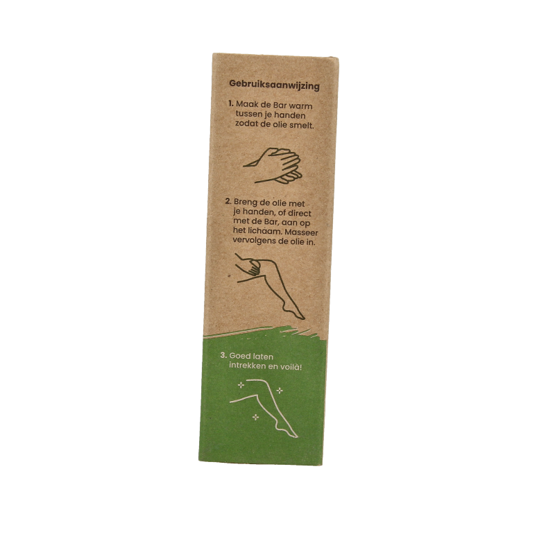2. Breng de olie met je handen, of direct met de bar, aan op het lichaam. Masseer vervolgens de olie in.