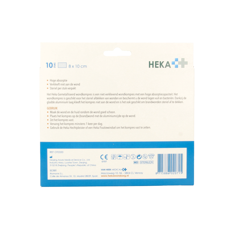 Het Heka Gemetalliseerd wondkompres is een niet-verklevend wondkompres met een hoge absorptiecapaciteit. Het wondkompres is geschikt voor het steriel afdekken van wonden en bescherm je de wond tegen vuil en bacteriën. Dankzij de gladde aluminium laag kleeft het kompres niet aan de wond en is het ook geschikt om brandwonden steriel af te dekken.