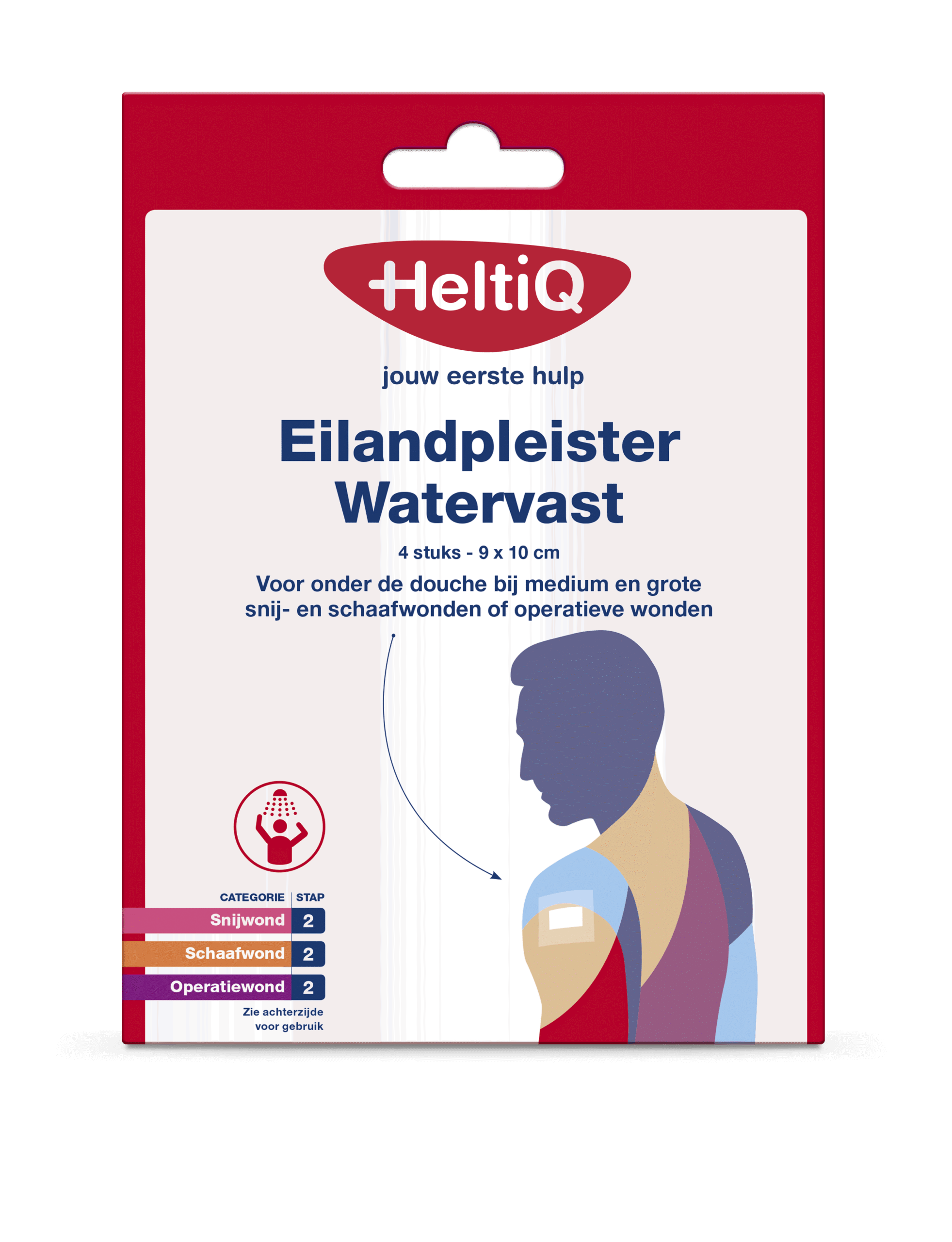 De HeltiQ Eilandpleister Watervast is een speciale watervaste steriele pleister die u kunt toepassen onder de douche voor een optimale bescherming van grotere wonden.