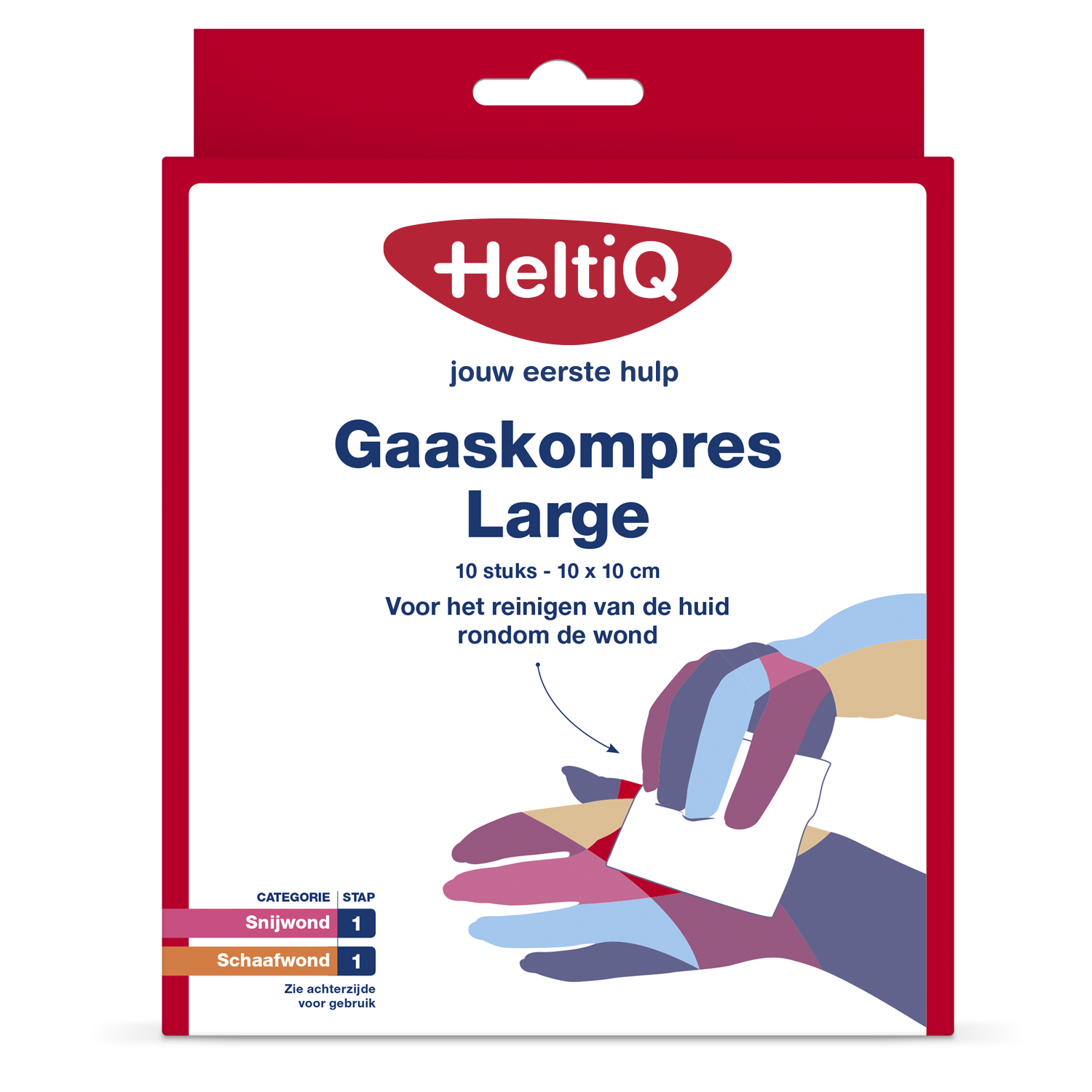HeltiQ Gaaskompres is een geweven (woven) steriel gaasje of kompres dat zowel geschikt is voor het reinigen als het afdekken van droge of vochtige wonden. Onder droge wonden worden gesloten wonden verstaan welke voorzien zijn van een korst. Vochtige wonden zijn ongesloten wonden bestaande uit wondvocht. Gebruik voor het reinigen van uw wond het HeltiQ Gaaskompres in combinatie met een wondontsmettingsmiddel. Gooi het gaaskompres na reiniging weg en gebruik voor het afdekken van de wond een nieuw gaaskompres.