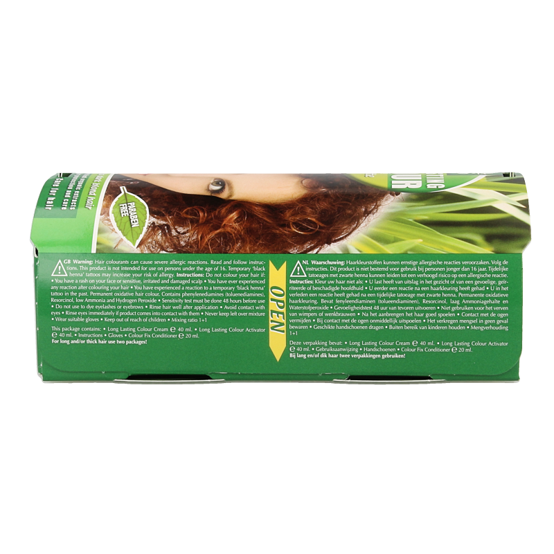 Hennaplus Long Lasting Colour biedt een duurzaam, intensief, glanzend kleurresultaat met 100% grijsdekking en optimale verzorging en bescherming van het haar. Houdt tot 3 maanden.