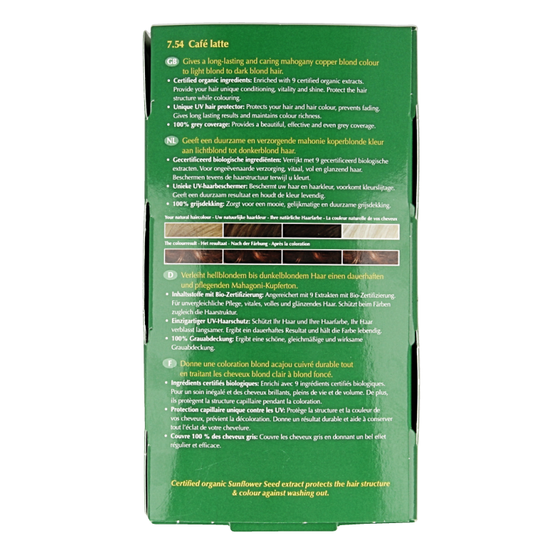De ultra verzorgende formulering is verrijkt met de fijnste gecertificeerd biologische extracten en conditionerende ingrediënten (onder andere Zonnebloemzaadextract, Rooibos, Groene thee, Ginseng, Hop, Kamille & Rozemarijn) voor gezond, glanzend en fluweel zacht haar. Kleurvervaging wordt tegengegaan, de haarstructuur versterkt en de kleur optimaal beschermd tegen UV stralen. Geniet hierdoor langer van uw haarkleur! Door gebruik te maken van de allernieuwste kleurtechnieken biedt Hennaplus een van de laagste dosering ammonia op de markt, met behoud van een optimaal kleurresultaat.