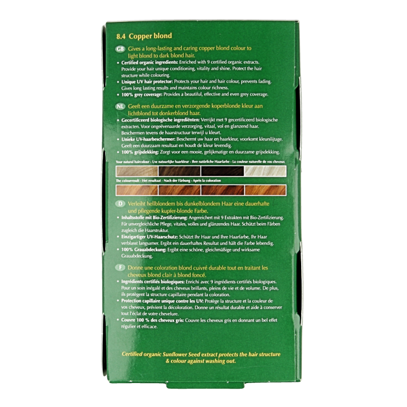 De ultra verzorgende formulering is verrijkt met de fijnste gecertificeerd biologische extracten en conditionerende ingrediënten (onder andere Zonnebloemzaadextract, Rooibos, Groene thee, Ginseng, Hop, Kamille & Rozemarijn) voor gezond, glanzend en fluweel zacht haar. Kleurvervaging wordt tegengegaan, de haarstructuur versterkt en de kleur optimaal beschermd tegen UV stralen. Geniet hierdoor langer van uw haarkleur! Door gebruik te maken van de allernieuwste kleurtechnieken biedt Hennaplus een van de laagste dosering ammonia op de markt, met behoud van een optimaal kleurresultaat.