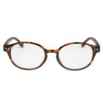 De leesbril is rond met een natuurlijke print. Van transparant oranje/bruin tot zwart, een prachtig geheel. Deze leesbril is verkrijgbaar in de sterktes +1.00, +1.50, +2.00, +2.50, +3.00.