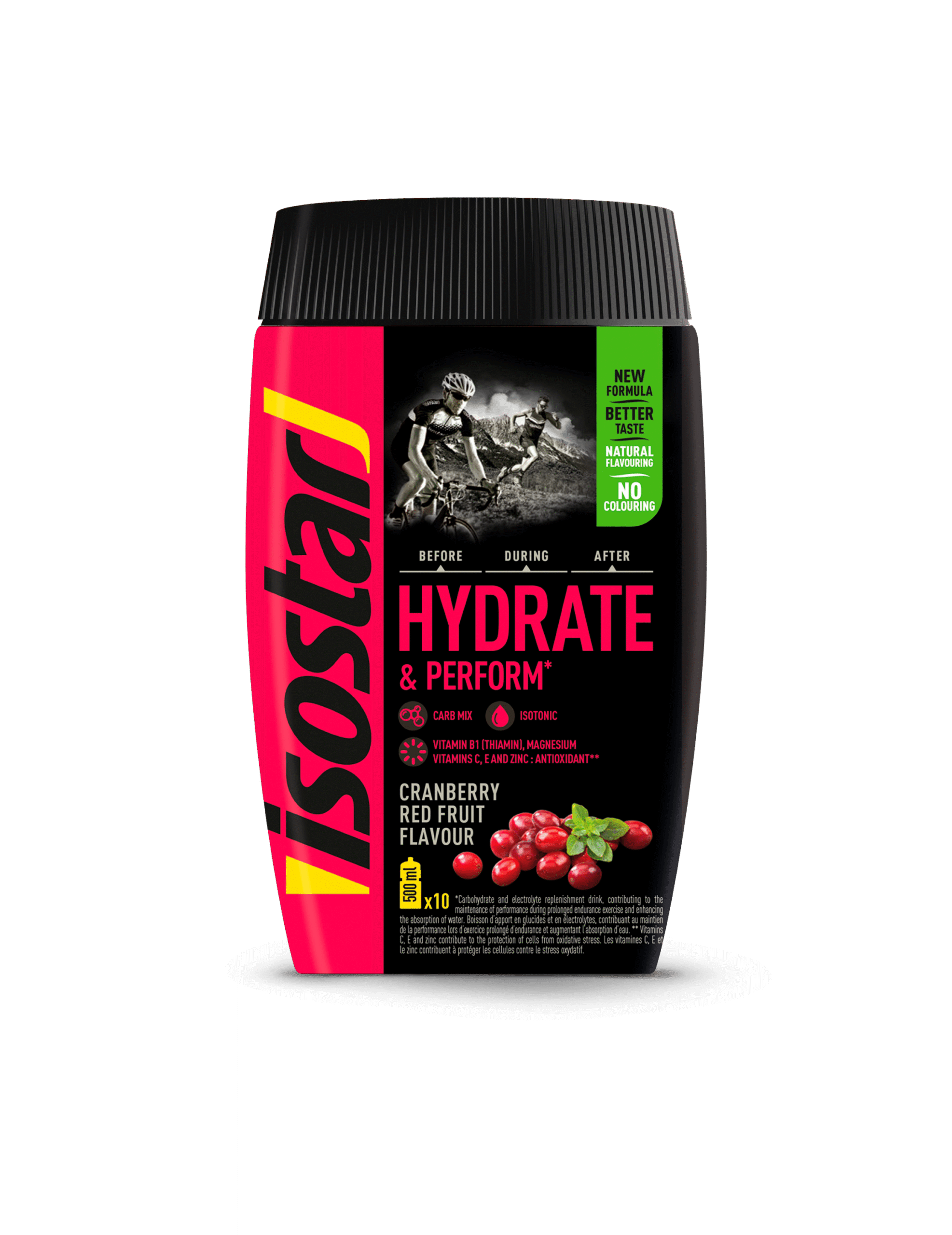Het Hydrate & Perform poeder is een isotone mix van isotone dranken voor de lichaamsbeweging, die helpt om elkaar te ontmoeten tijdens het opwarmen (150 ml om de 15 minuten) en op regelmatige tijdstippen tijdens en na het sporten (tot 2 uur na het sporten) (150 ml om de 15 minuten). Methode voor het bereiden van een portie: verdun 3 doseerlepels in 500 ml water.