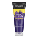 John Frieda Violet Crush Intense Shampoo neutraliseert de ongewenste gele gloed en geeft je haar een platinum cool blonde tint, al na één wasbeurt. De formule met gecrushte paarse en blauwe pigmenten transformeert zelfs de meest hardnekkige gele en oranje tonen naar koeler en helderder blond. Vegan Friendly: zonder dierlijke ingredienten en niet getest op dieren.