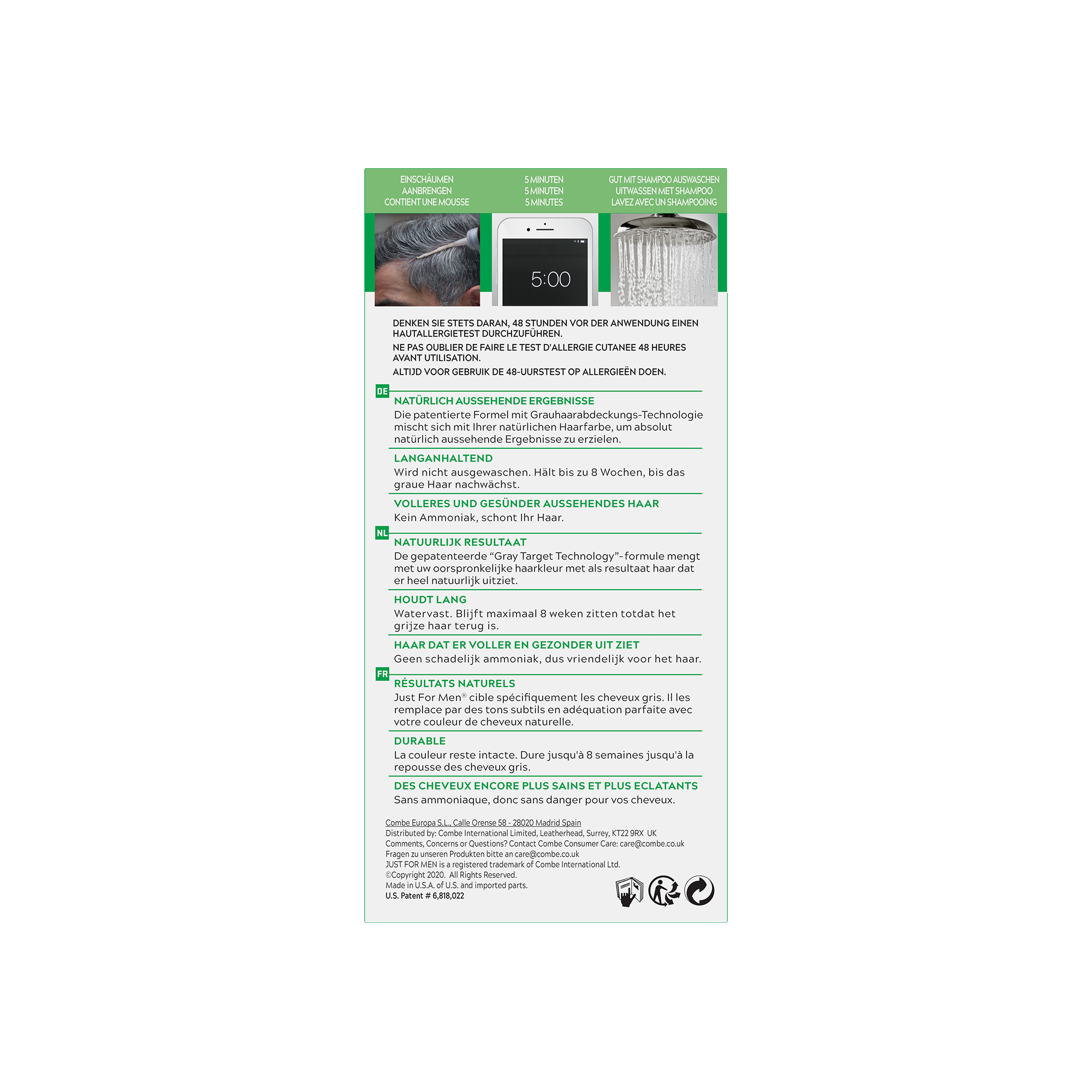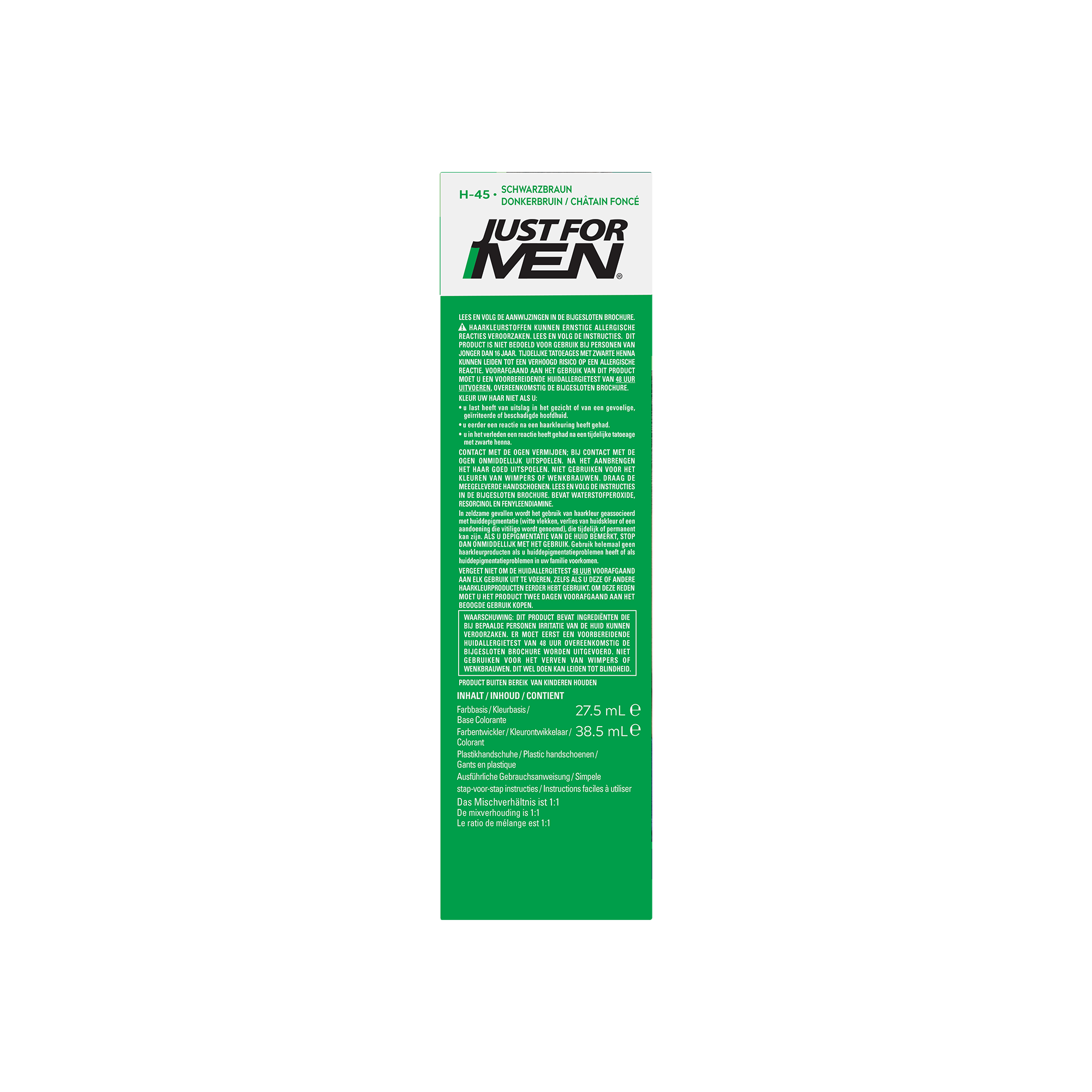 Just For Men Original Donkerbruin Haarkleuring is speciaal voor mannen. Niet alleen vrouwen vinden het vervelend om grijs haar te krijgen. Mannen hebben hier soms moeite mee, hoewel het ook erg aantrekkelijk kan zijn. Wil je toch gewoon je eigen haarkleur terug, gebruik dan Just For Men. Met Just For Men Original Donkerbruin haarkleuring krijg je je natuurlijke haarkleur terug in 5 eenvoudige minuten.