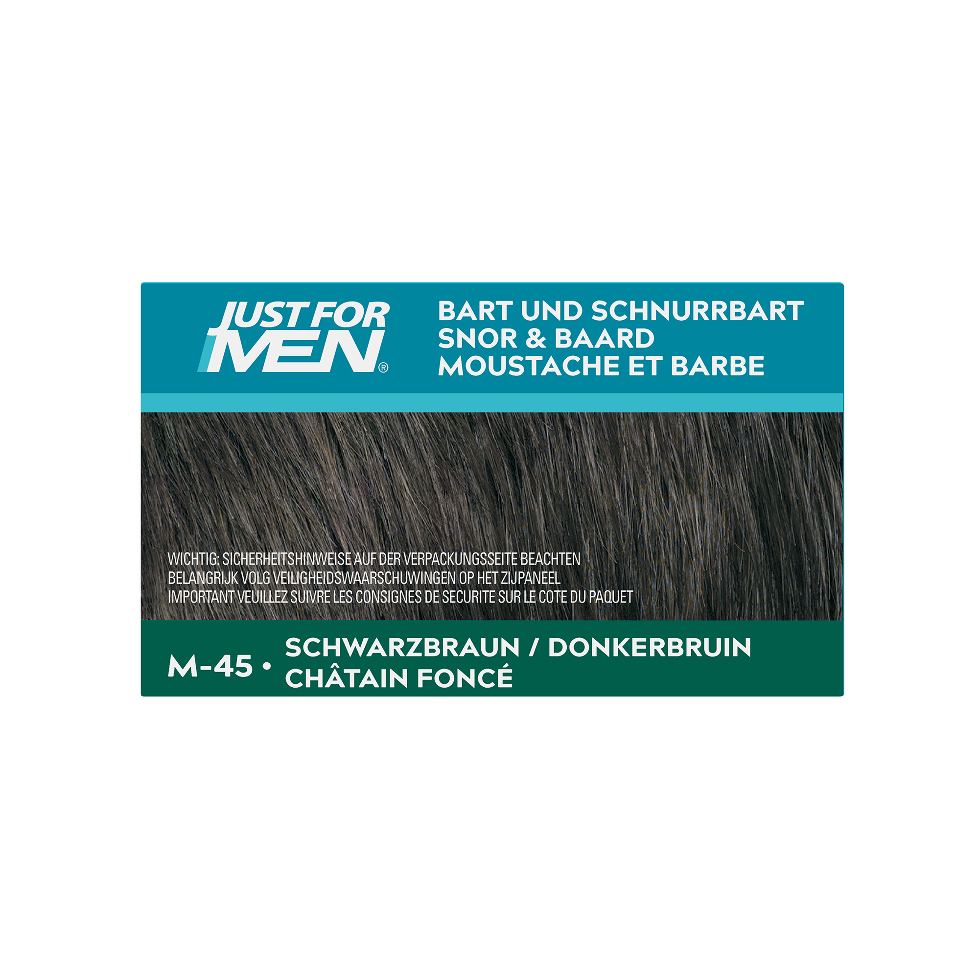 Just For Men Snor & Baard Haarverf M45 Donkerbruin herstelt de natuurlijke kleur van snor- en baard haren en laat grijs haar verdwijnen. Met de bijgeleverde applicator is de verf eenvoudig in te borstelen. De speciale formule dringt diep door in harde, moeilijk te kleuren gezichtsbeharing en maakt jouw snor en baard voller in slechts 5 minuten.