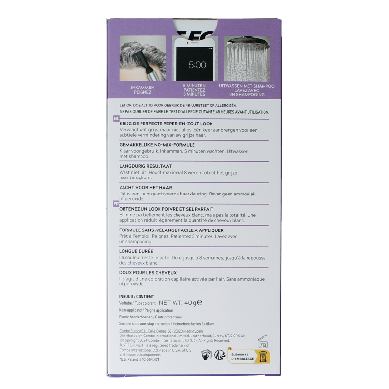 Vervaagt wat grijs, maar niet alles. Eén keer aanbrengen voor een subtiele vermindering van uw grijze haar.
