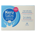 Vlak voor of tijdens het nuttigen van een lactose bevattend product Kerutabs met water innemen. Meestal zijn 1 à 2 tabletten voldoende. Maximaal 3 tabletten per keer.