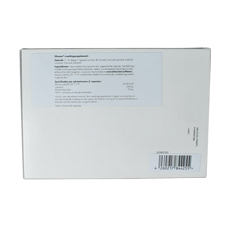 Sibosan is een speciale combinatie van de bacteriestam Bacillus subtilis-DE111TM in een hoge concentratie, lysozym en essentiële oliën.