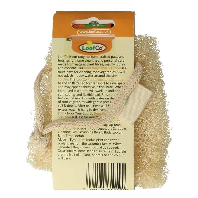 De LoofCo Root Vegetable Scrubbers worden met de hand gemaakt in Egypte van de kalebas van de inheemse Luffa Aegyptiaca-plant met een ophanglus van Egyptisch katoen. Gemaakt van een taps toelopende plak van 11,5 cm van het dunne uiteinde van een loofah-kalebas, gebruiken we het dunnere uiteinde van een loofah omdat het meer belucht is en bijzonder geschikt voor deze taak. Ongeveer 6-8 cm x 8-11 cm, natuurlijke variaties in grootte kunnen optreden.