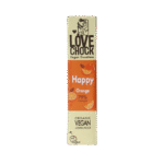 Zacht en heerlijk, Happy is een bijzondere traktatie voor jezelf of voor een speciaal iemand. Extravagant zachte en veganistische pure chocolade gecombineerd met fruitige sinaasappel.