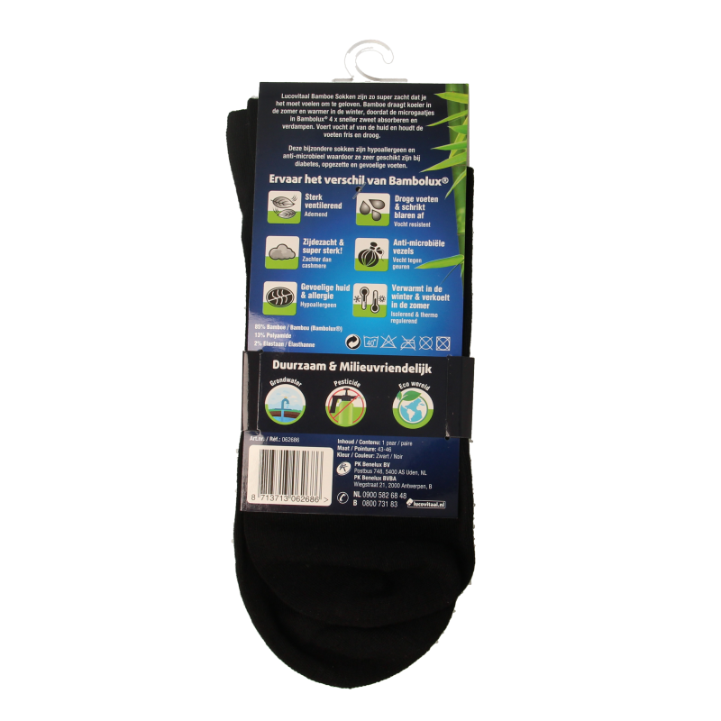 Lucovitaal Bamboe sokken zijn zo super zacht dat je het moet voelen om te geloven. Bamboe draagt koeler in de zomer en warmer in de winter, doordat de microgaatjes in Bambolux® 4x sneller zweet absorberen en verdampen.
