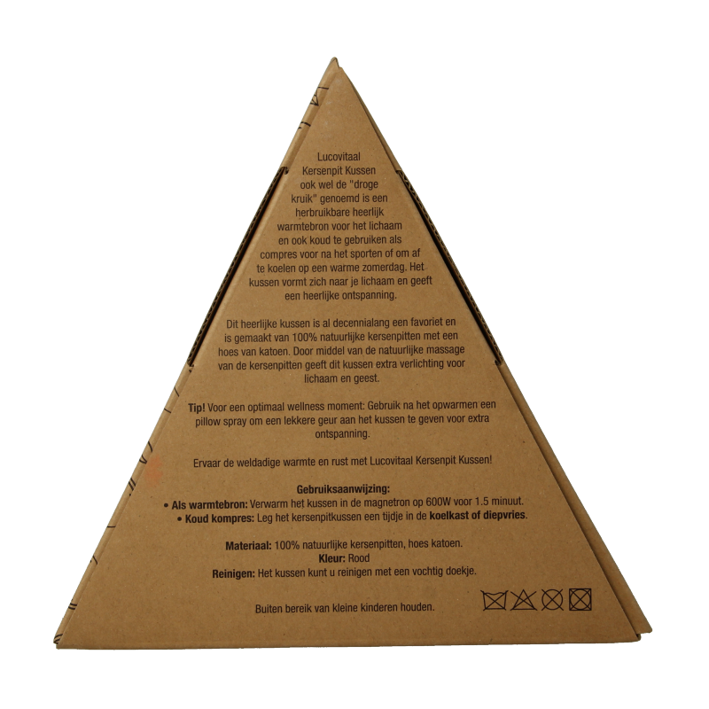 Lucovitaal Kersenpit Kussen ook wel de “droge kruik” genoemd is een herbruikbare heerlijk warmtebron voor het lichaam en ook koud te gebruiken als kompres voor na het sporten of om af te koelen op een warme zomerdag. Het kussen vormt zich naar je lichaam en geeft een heerlijke ontspanning.