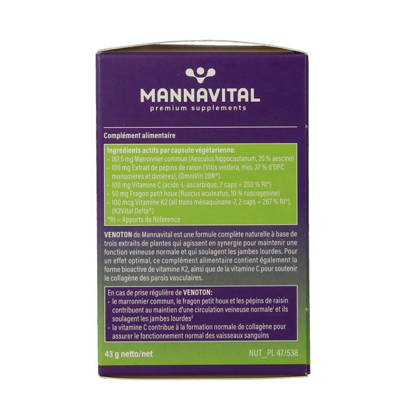 Venoton van Mannavital is een natuurlijke totaalformule op basis van drie plantenextracten.