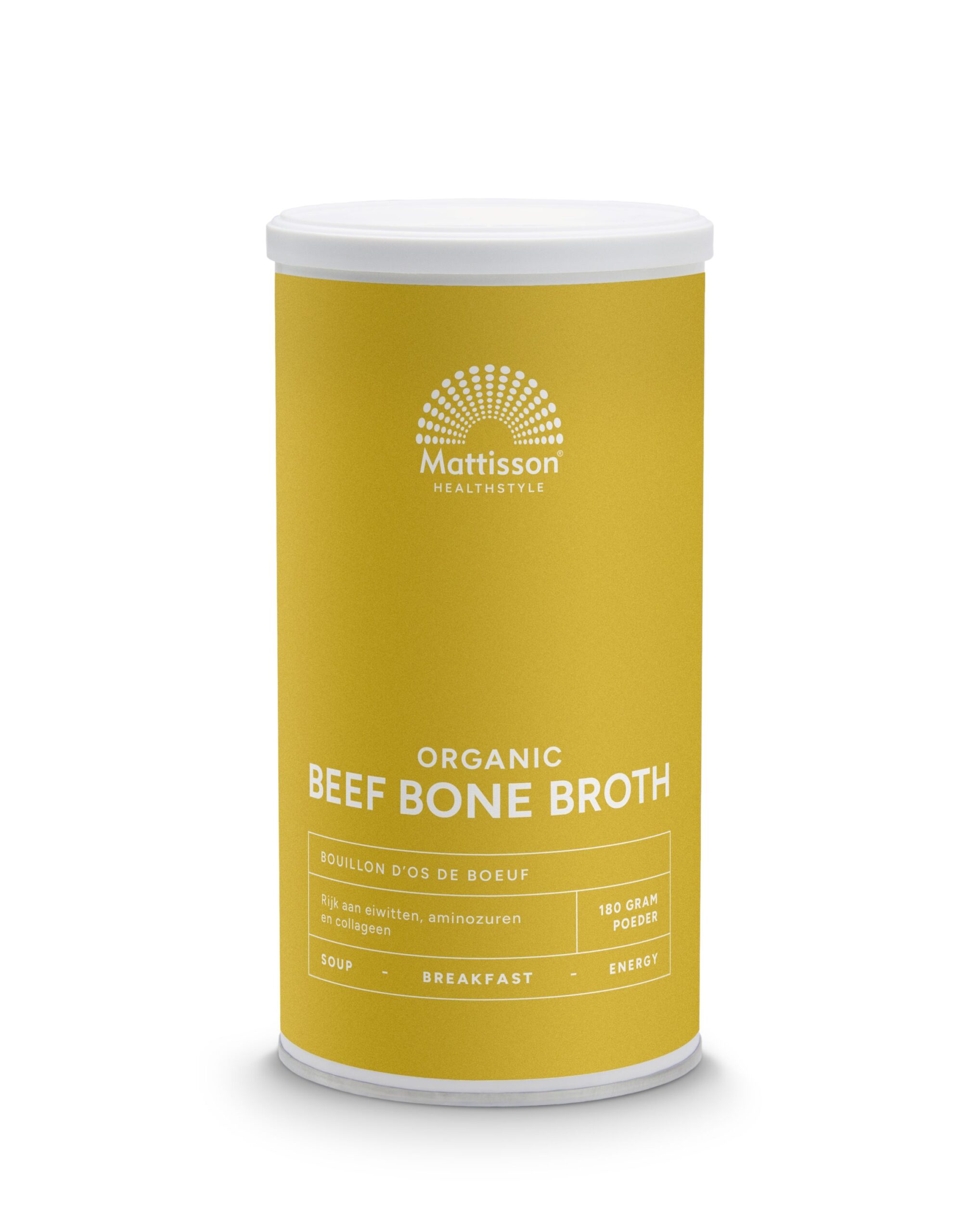 Beef Bone Broth is Runder Bottenbouillon bereid uit vlezige botten. De Bottenbouillon wordt vervolgens gedehydrateerd, waardoor er een geconcentreerde Proteïne Poeder overblijft, rijk aan Collageen Type 1, Vitamines, Mineralen en (Essentiële) Aminozuren. Door de toevoeging van Zonnebloem Lecithine lost de poeder zeer goed op.