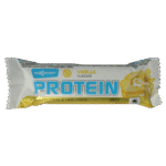 27,6% eiwitmelange (WEI en MELKEIWITconcentraat, SOJA-eiwitisolaat), maltosesiroop, 18% witte glazuur (suiker, plantaardige vetten (palmpit, palm, shea in wisselende verhoudingen), WEIpoeder, magere MELKpoeder, emulgator: zonnebloemlecithine, natuurlijk vanillearoma), oligofructose (vezel), koolzaadolie, stabilisator: glycerol, geraspte kokosnoot, SOJAvlokken, gedroogde rozijnen (gedroogde rozijnen, zonnebloemolie), emulgator: SOJAlecithine, natuurlijk vanillearoma, aroma.