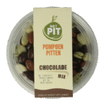 Witte chocolade 33%, pure chocolade 33%, MELK chocolade 34% (suiker, cacaoboter, volle MELKpoeder, cacaomassa, weipoeder, MELKsuiker, emulgator: SOJAlecithine), Pompoenpitten. Glansmiddel: Arabische gom.